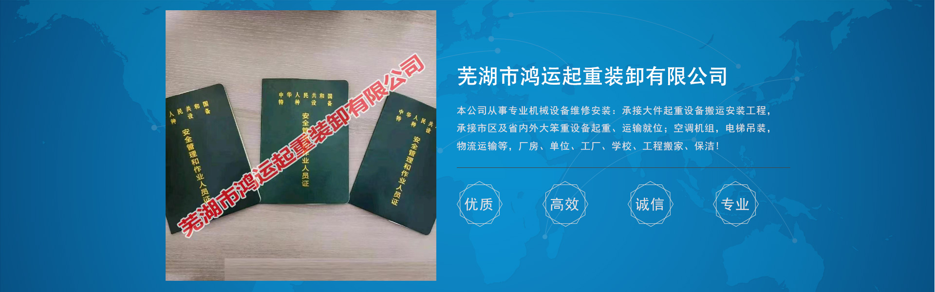 本公司從事專(zhuān)業(yè)機(jī)械設(shè)備維修安裝:承接大件起重設(shè)備搬運(yùn)安裝工程。吊裝移位、大型機(jī)床、注塑機(jī)、冷水機(jī)組、發(fā)電機(jī)、醫(yī)療設(shè)備、印刷機(jī)、空調(diào)機(jī)組、鍋爐等安裝調(diào)試。油壓機(jī)、離心機(jī)組。橋梁架設(shè)、機(jī)場(chǎng)、港口、鐵路、機(jī)械設(shè)備搬等。承接市區(qū)及省內(nèi)外大笨重設(shè)備起重、運(yùn)輸就位??照{(diào)機(jī)組,電梯吊裝,物流運(yùn)輸?shù)龋瑥S(chǎng)房、單位、工廠(chǎng)、學(xué)校、工程搬家、保潔。
